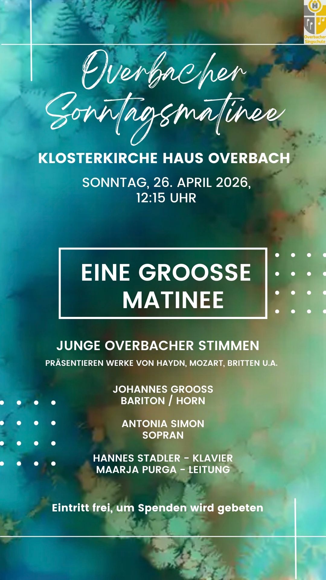 Das Konzert findet in Kooperation mit dem Museum Zitadelle und der Overbacher Singschule statt.